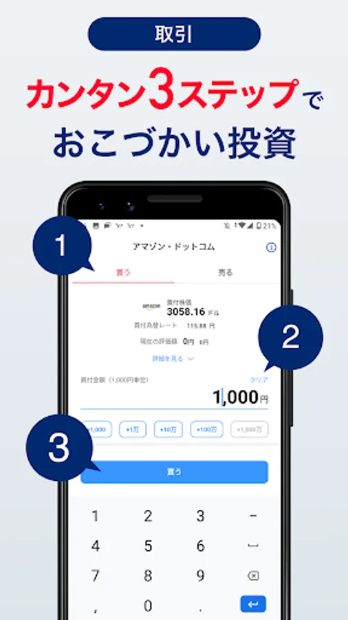 1. Purchase stocks of famous Japanese and American companies and carefully selected investment trusts for 1,000 yen