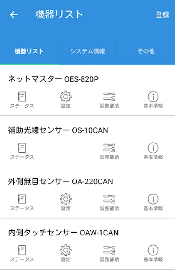 Information, status display, and settings for each device that makes up the automatic door system can be remotely controlled using a smartphone or tablet.