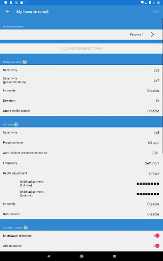 Here’s a list of parameters you can change via "Industrial Door Sensor Setup".