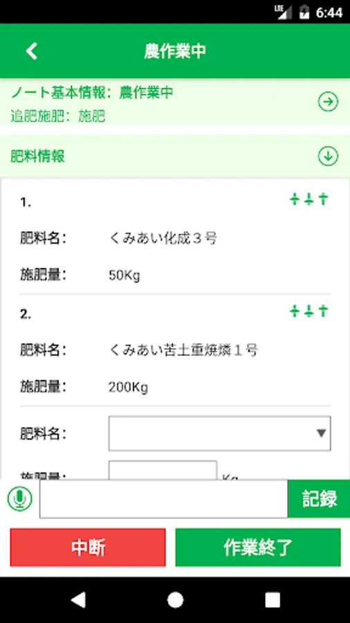 農作業情報を簡単記録