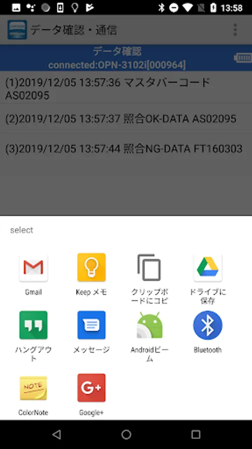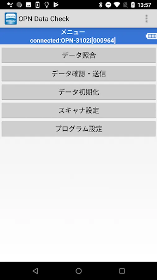 OPNDataCheck is an application that verifies the barcode read by the Bluetooth data collector manufactured by Optoelectronics, and can send the result data by e-mail or copy it to the clipboard. In addition, this application can send some commands to the data collector.