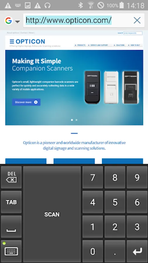 The Opticon barcode readers PX-100 can be used to quickly input text on Android phones by scanning barcodes.