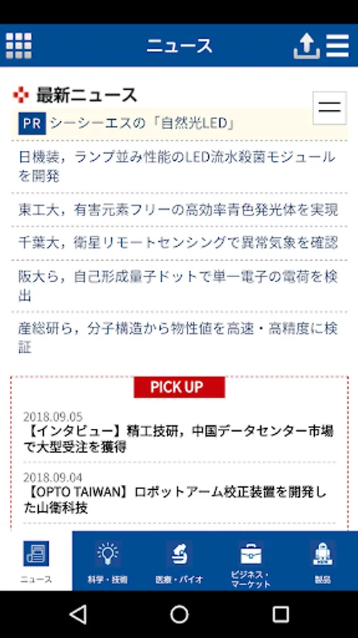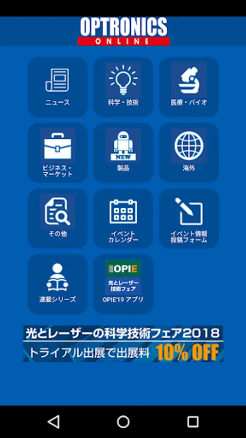 Light industry-related news that is updated every day, of course, you can also read feel free to smartphone and tablet content that is published in the magazine "Monthly OPTRONICS". In addition, because you can receive, such as in the PUSH notification exhibitions and events, and not worry about divulging important information. In business to research, please try this application by all means.