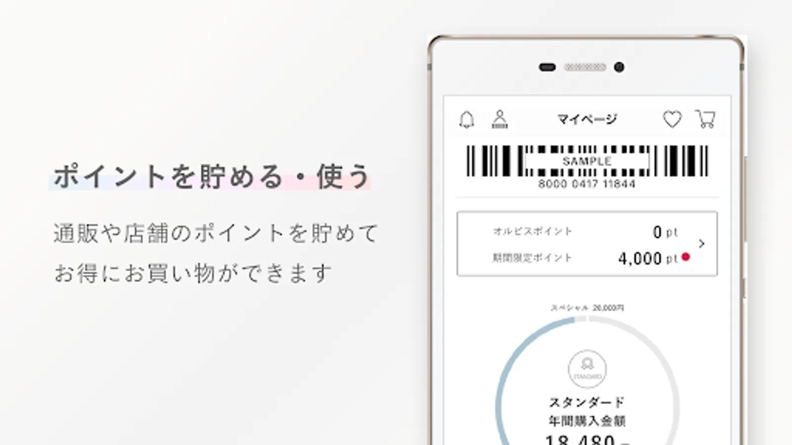 When shopping at ORBIS directly managed stores, you can earn points with the app. If you register as a member in the app, you can use it for shopping.
