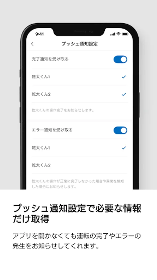 You can always check the driving status even when you are away from home, and receive error and completion notifications.