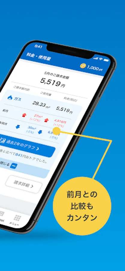 It is an application limited to main members of Osaka Gas's member site "My Osaka Gas". You can check monthly charges and usage, and earn points!