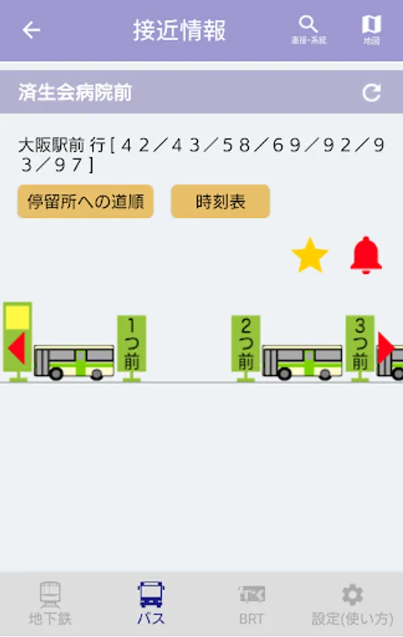 ・接近情報はバスが3つ前の停留所より手前にある場合は対象停留所を点滅表示するようになりました。