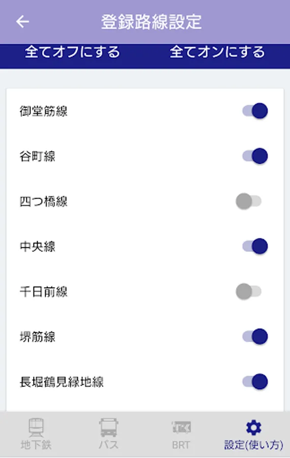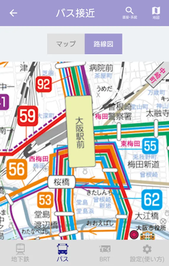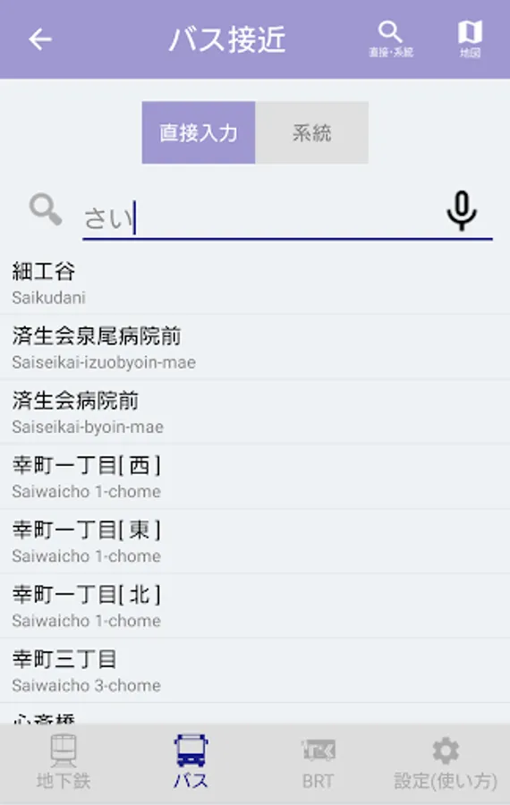 ・インストール時の初期トップ画面は地下鉄ですが、アプリを終了した時点の機能(地下鉄、バス、BRTおよび設定(使い方))が次回起動時のトップ画面になります。