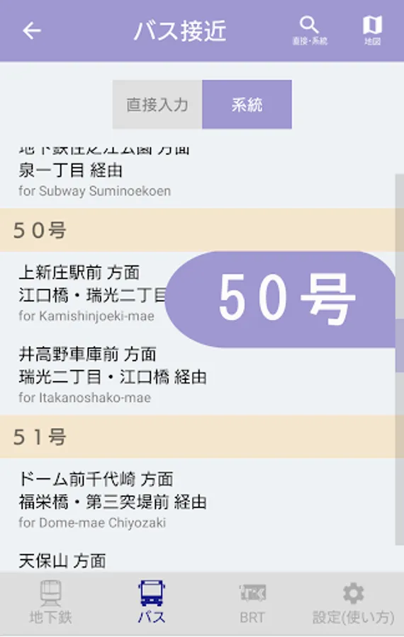 ・系統検索はスクロールを早くしても系統番号が大きく表示されるため、見失うことなくわかりやすくなりました。