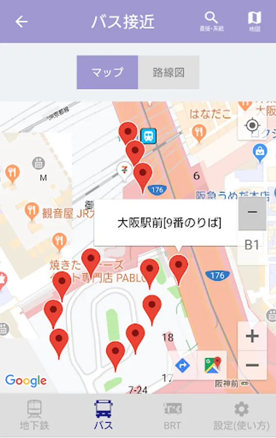 ・マップ検索は同一停留所でのりばが多くある場合に、のりば番号や付随名称が表示されるようになりました。
