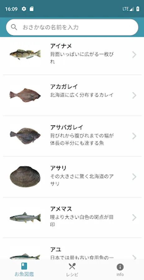 北海道の魚介類とその料理レシピを簡単に検索・閲覧できる図鑑アプリです.