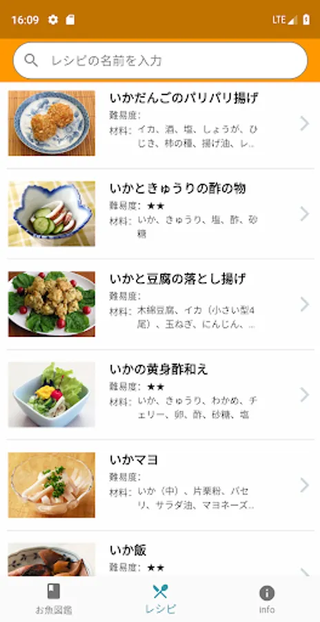 魚介類の情報とその魚介類の料理レシピを見ることができます.