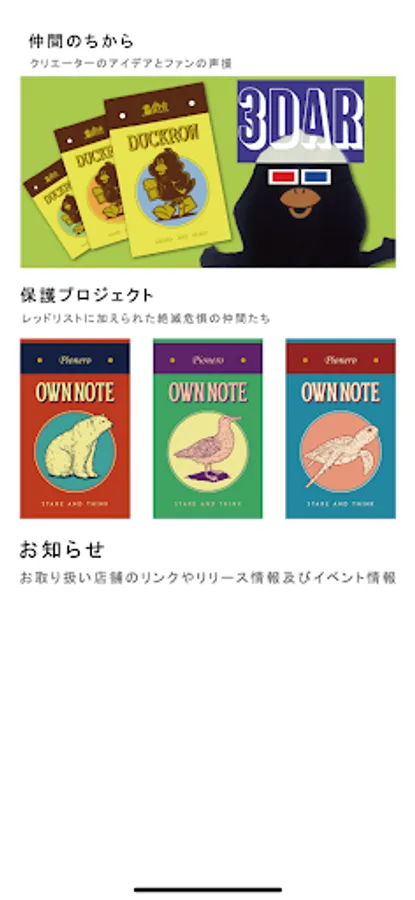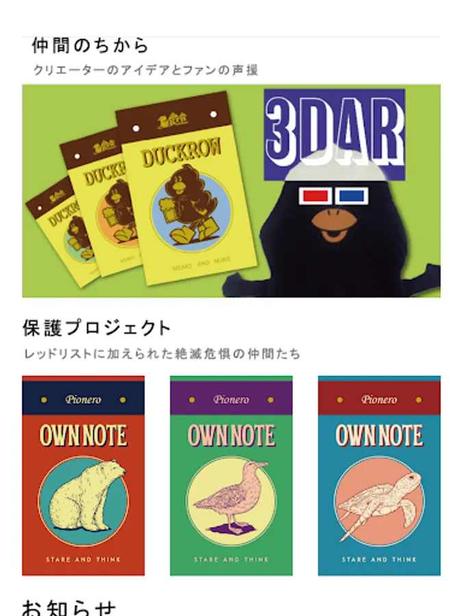 OWN NOTE is an outdoor notebook with icons of animals listed in the "Red List" of endangered wildlife created by the International Union for Conservation of Nature (IUCN).