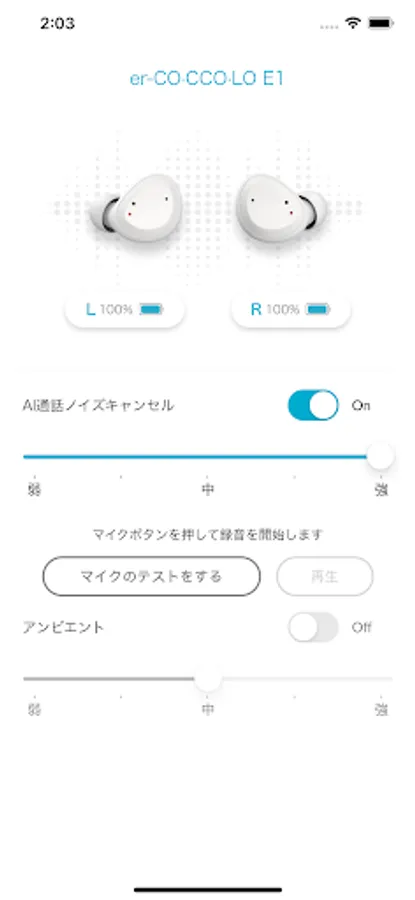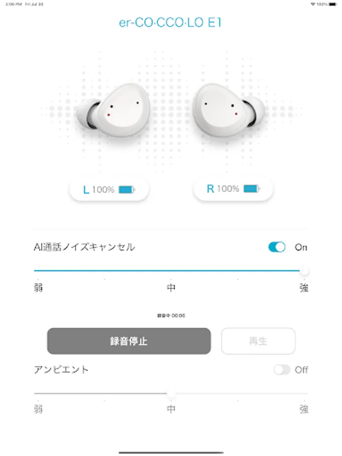 1. Call noise cancellation ON / OFF (power saving) can be controlled in a total of 5 stages. You can reduce the power consumption of the earphones by setting the power saving mode when you are not talking on the phone, and the battery will last longer.