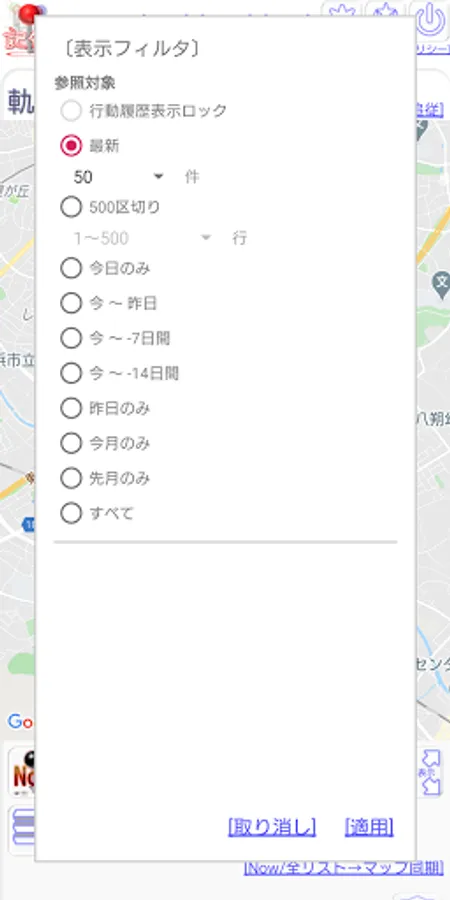 * When operating the map, [Now center follow] and [Now / list → map synchronization] are forcibly turned off.