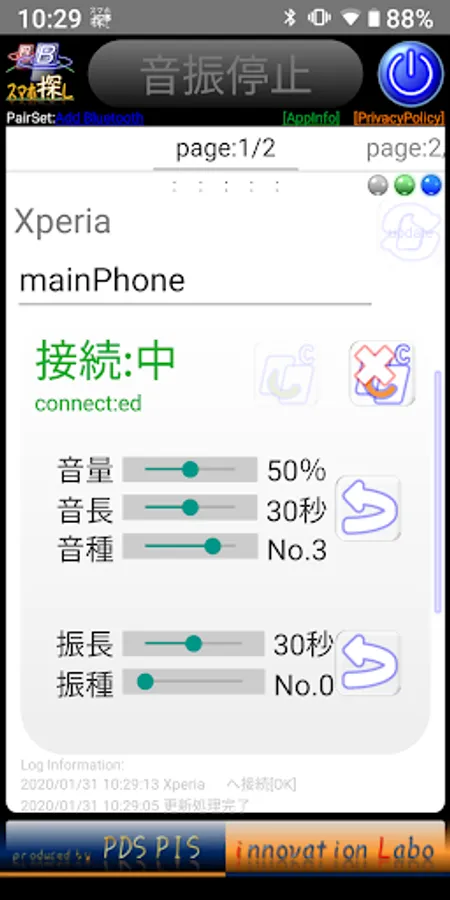 Tap the update button (update) on the upper right and check if the smartphone to be searched can receive the search command.