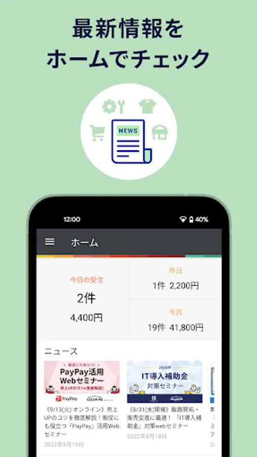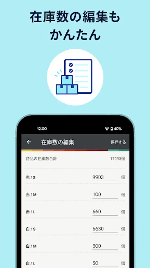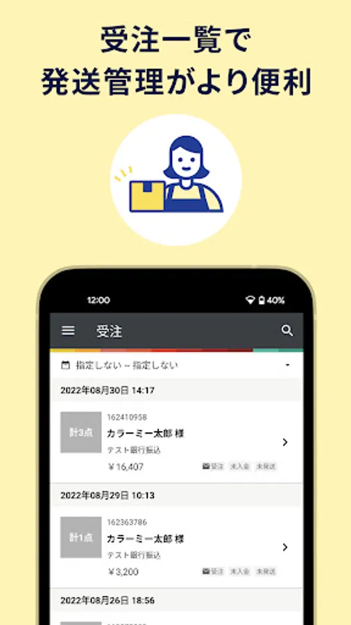 More than 40,000 stores nationwide are active! This is the official app of Color Me Shop, which specializes in online shop management. You can efficiently perform "ordering", "shipping", "inventory management", and "product management" of the online shop.