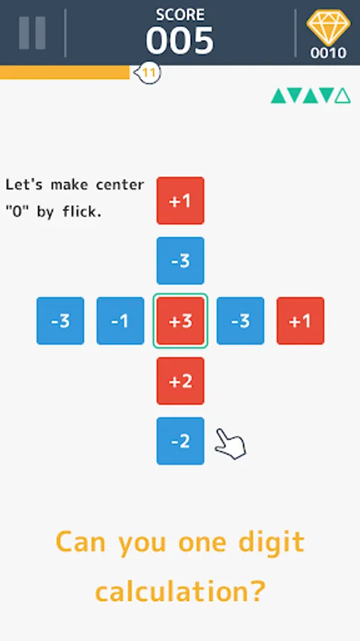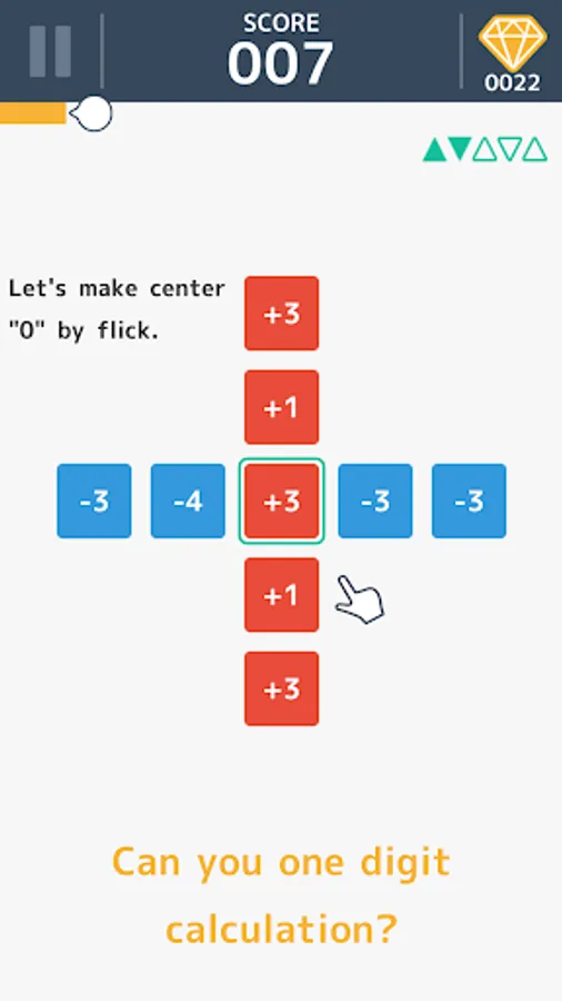 Let's make ”0” in center panel by moving number panels up/down/right/left with flick movement!
