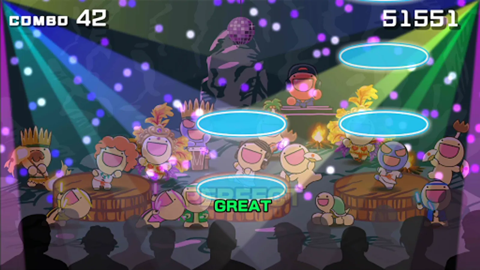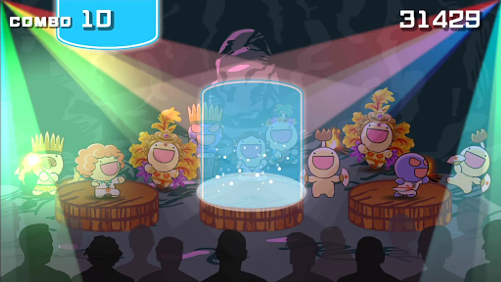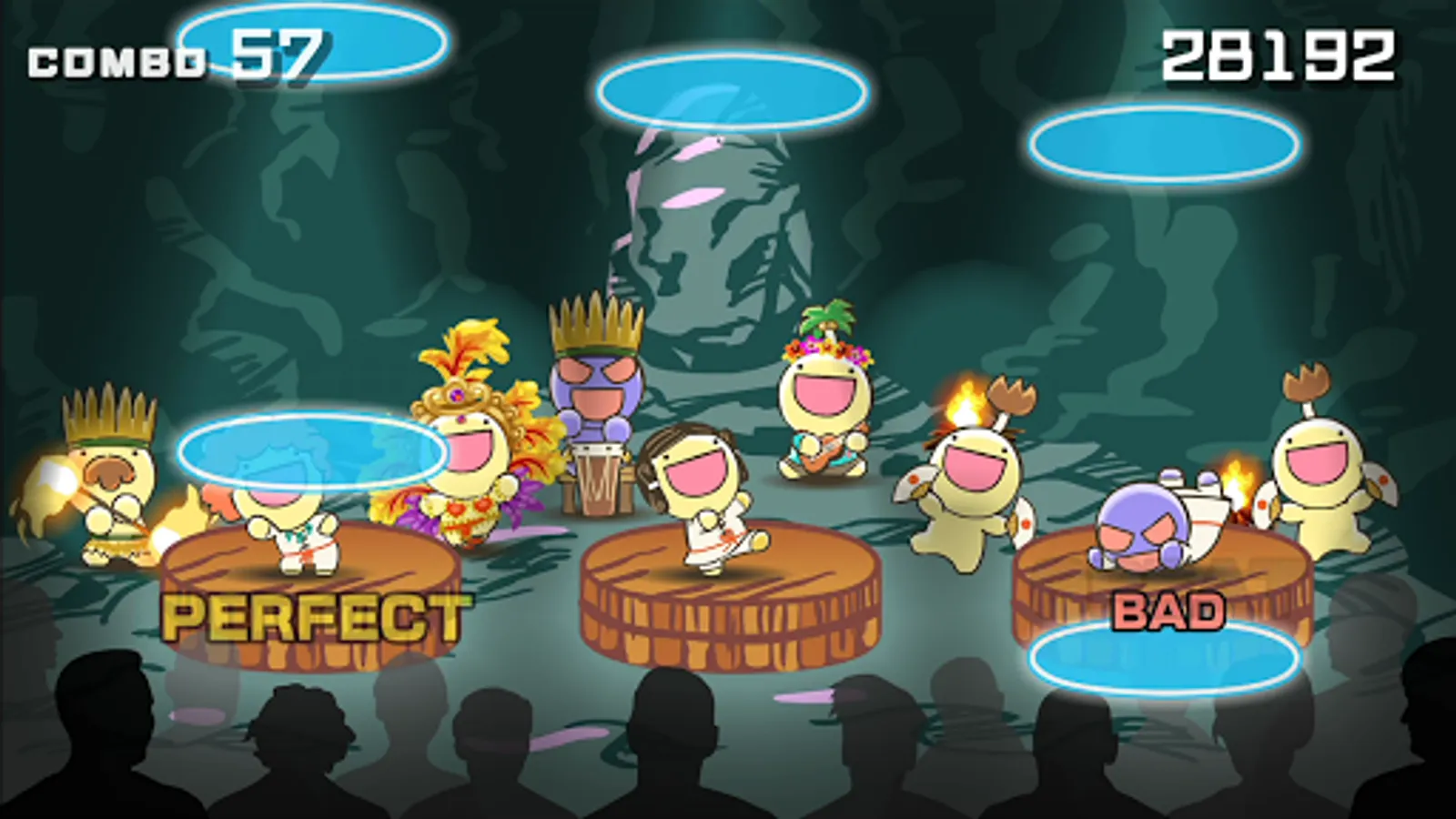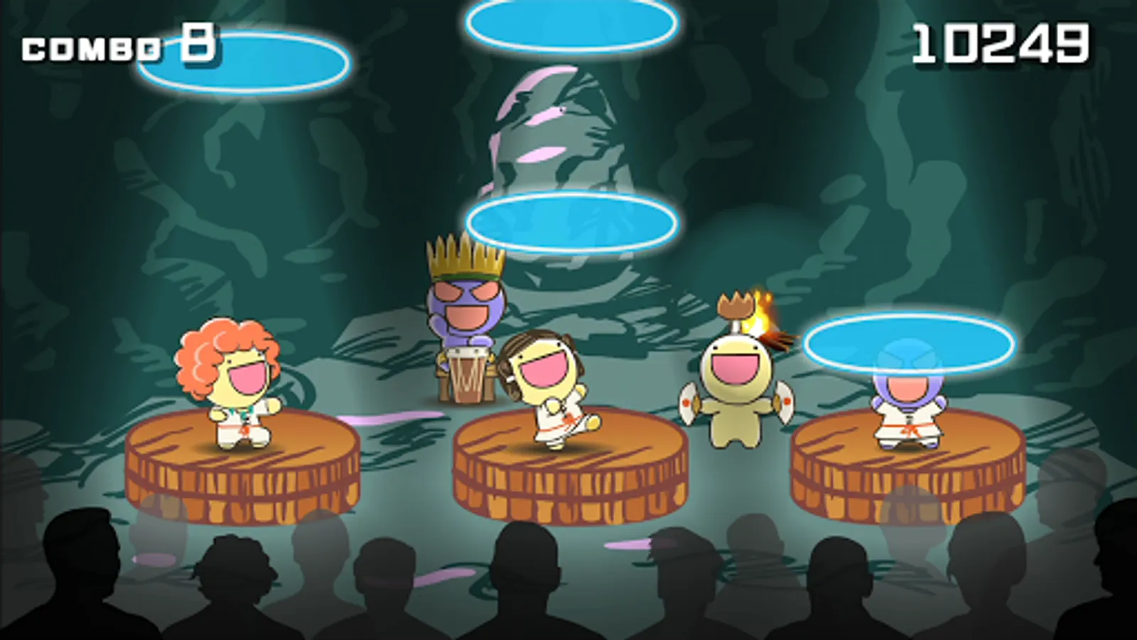 Tap the notes that move from above at the right time.