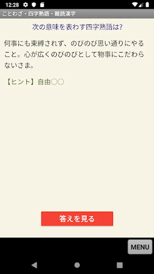 "Dictionary mode" and "Quiz mode" are prepared for each. In quiz mode, you can use it like a “reverse dictionary” or “writing practice” to know the words from meaning, and you can enjoy trivia knowledge when everyone gathers.