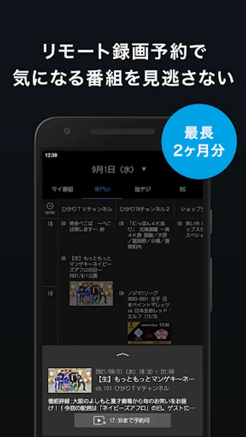 "Hikari TV TV" is an application that allows you to reserve programs and watch reserved programs anywhere on your smartphone or tablet terminal with the "TV broadcasting service" of Hikari TV. It is convenient for viewing on the go.