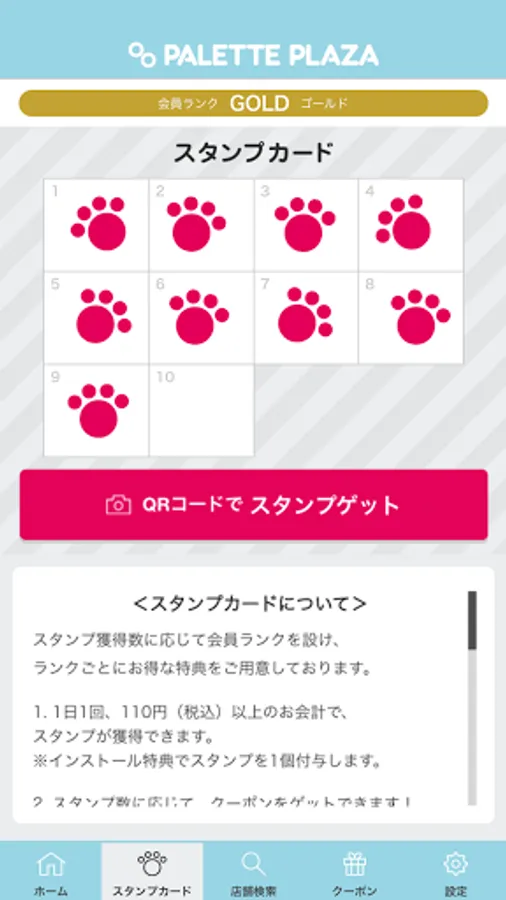 For every 10 stamps, the membership rank will increase from gold to platinum to diamonds, and you will get more benefits.