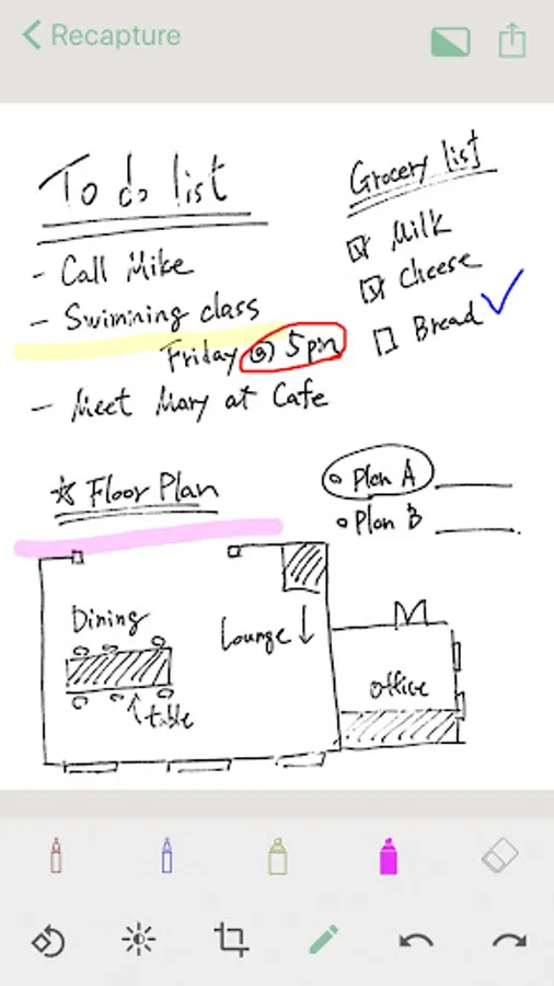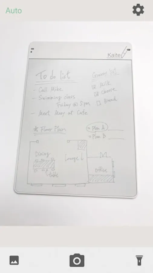 Easy to use. Just launch the app and shoot the Kaite itself, it automatically recognizes the writing surface, corrects the tilt, etc., and makes it easy to see and digitize cleanly. Digitized memos can be saved to the camera roll, sent to email or cloud, and easily recorded and shared.