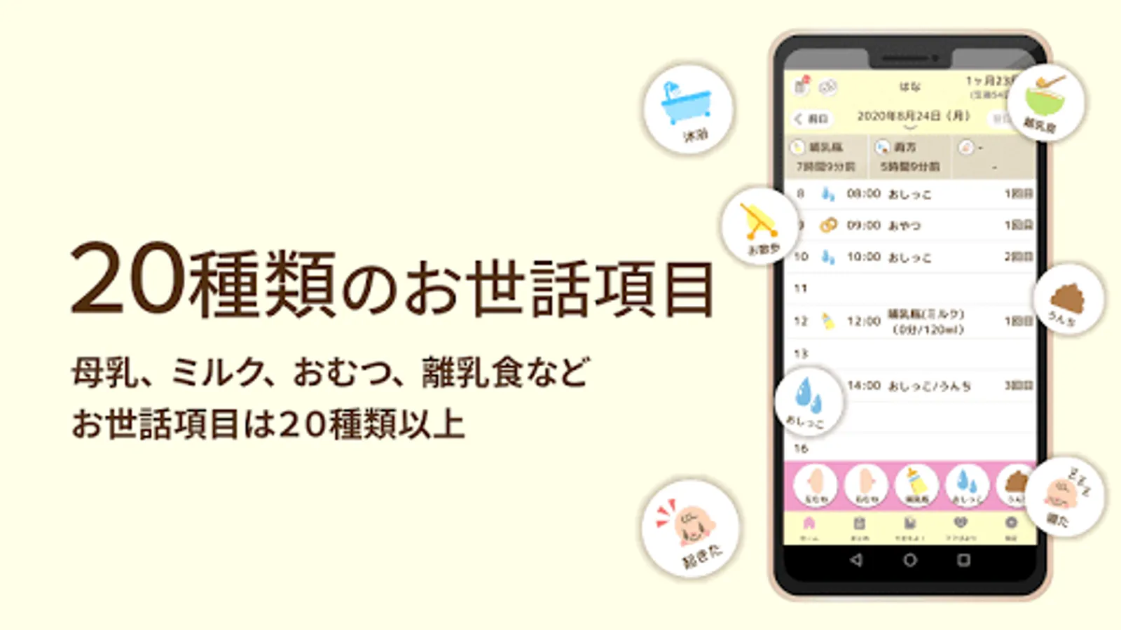 * A timeline that makes it easy to see the records of the day! Know when to take care of your baby.