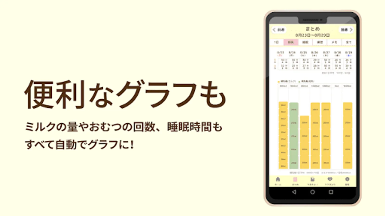 * Automatically tally records of breastfeeding, sleep, and excretion! Weekly graphs are also useful for comparison with the past.