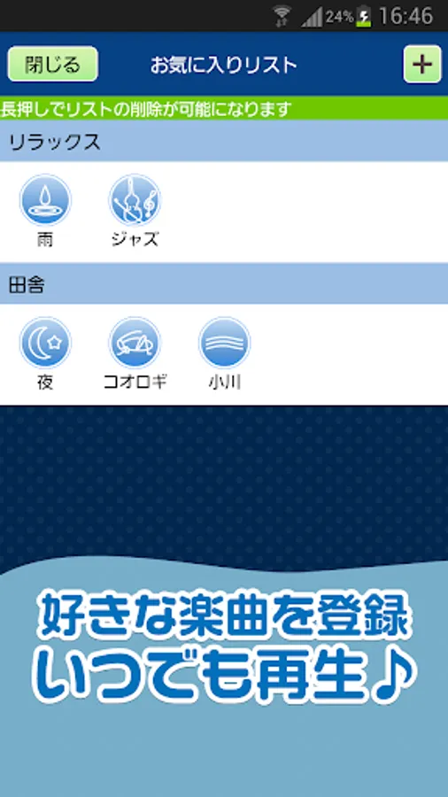 気に入った組み合わせは、「お気に入り」に登録しておけば、いつでもタップするだけで聞くことができます。