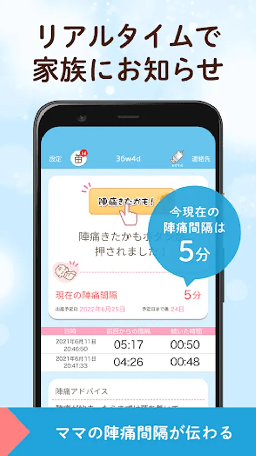 ・ Mom will be notified of the timing by push notification when labor pains occur.