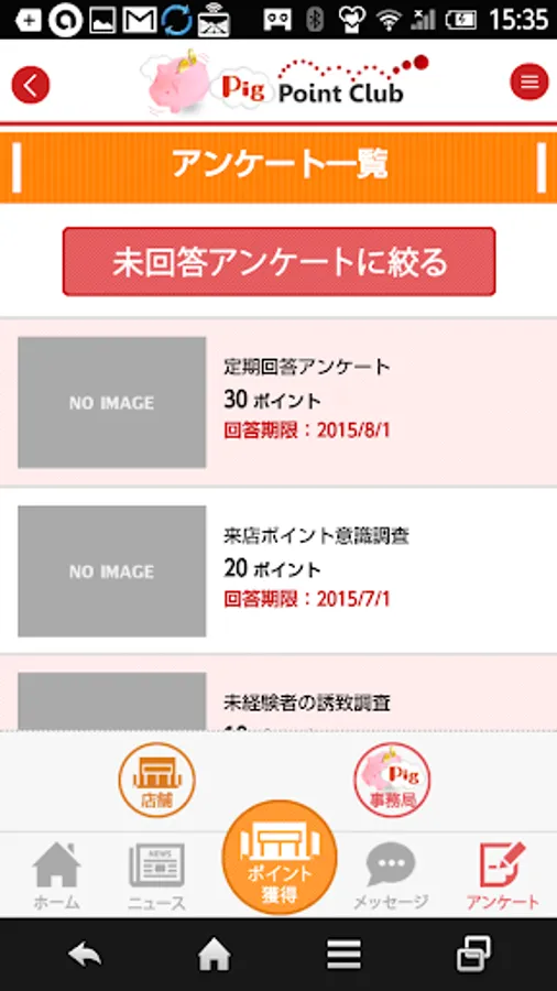 All you have to do is launch the PigPoint Club app in the store and tap the button! In addition, you can easily receive push notifications and answer questionnaires with the app! Earn more and more points!