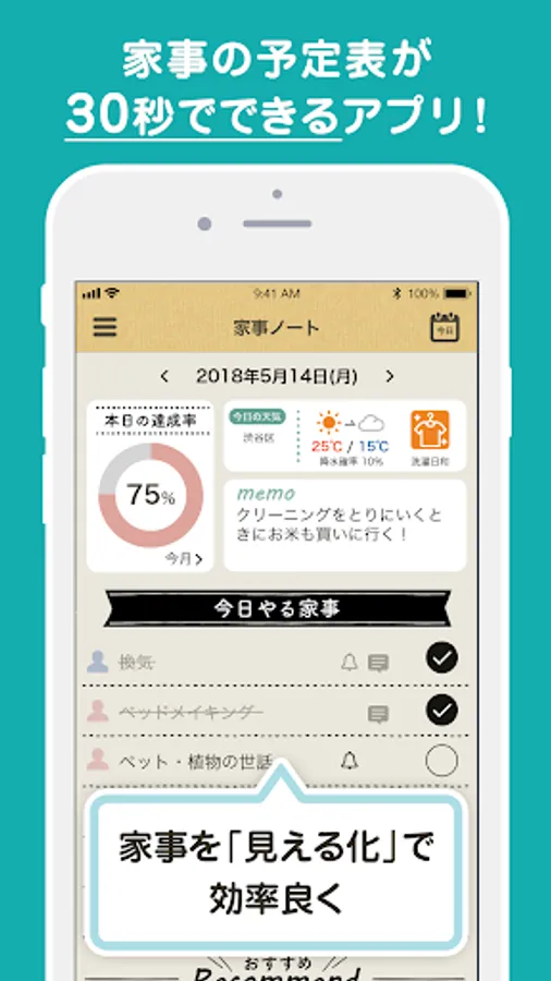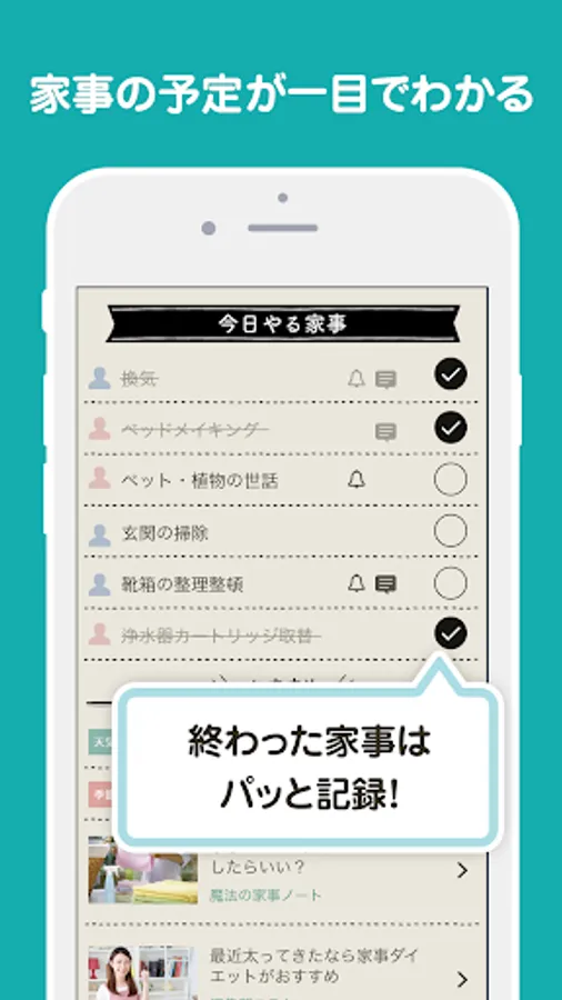 As soon as you open the app, you can see the "housework to do today", so you don't get lost in the housework you should do.