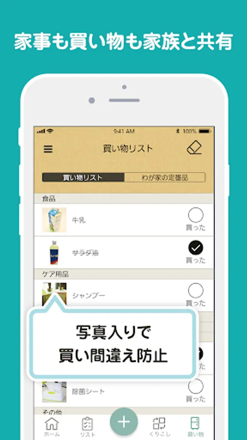 A shopping list can be registered with photos and notes, so that no one in the family buys the wrong item.