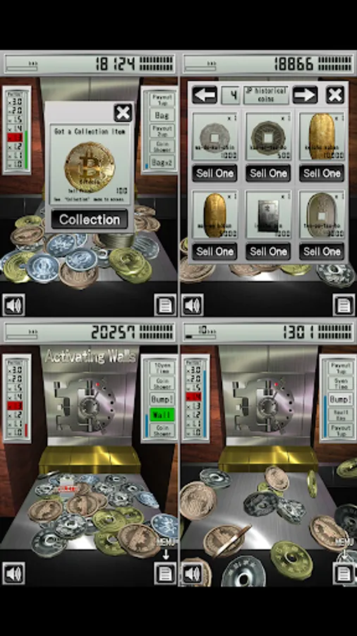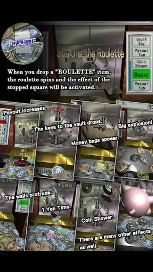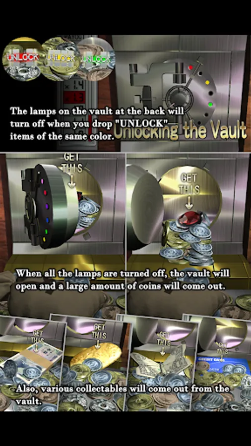 From the center vault, rare coins will come out. Such as old coins, foreign coins etc. with variety of over 140.