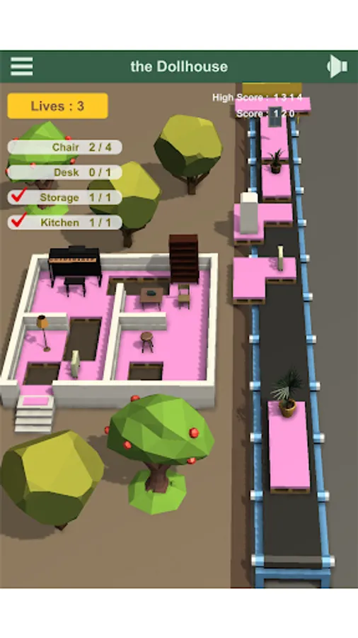 Easy operations just to drag blocks of various shapes from the conveyor belt and placing them in the room. Use your head not to the blocks overlap as much as possible.