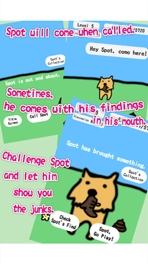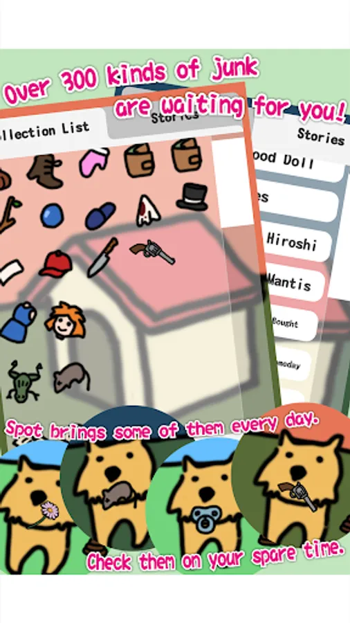 There are over 300 different kinds of these junks included. Spot brings a selection of them to you every day. Open the app during brief moments, whether you're waiting for a train, lunchtime, or while standing in line for the restroom, and take a peek at his findings. What will Spot show you this morning? Could the item Spot shares tonight be connected to the one he brought the day before yesterday, sharing a common owner?