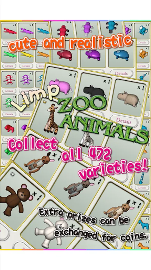 The prizes are cute stuffed animals that are very soft and limp. Realistic soft feel make you feel being healed.