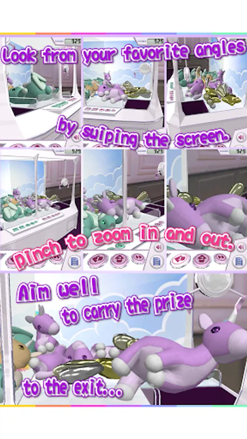 The operation is simple. Just keep pressing the movement buttons and release them at good timings. Swipe the screen to look at the prizes from any angle you like.