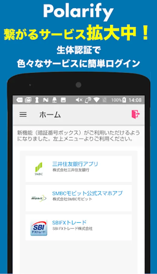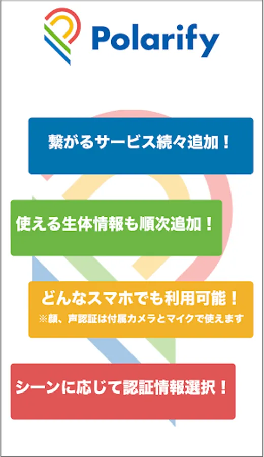 ■ Polarify is an app that allows you to log in to your service with biometric authentication using your finger, face, and voice.