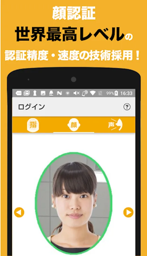 There are three types of biometric authentication that can be used: [finger], [face], and [voice]. We will continue to add cutting-edge authentication technology in the future!