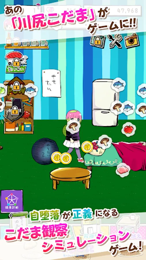 The popular Twitter manga "Kawajiri Kodama" is now available as a loose simulation game! "Kodama Diary" is a simulation game for adults who affirm self-depravity while gazing at Kodama Kawajiri, a dangerous lion who lives with his fingers, eating alcohol, oil, salty and sweet foods.