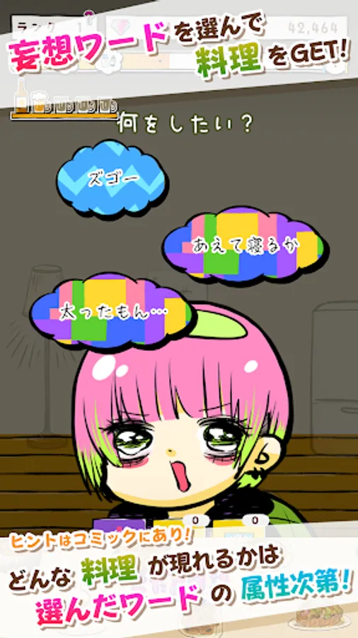 Delusional words appear when you collect the ingredients floating on the screen! 60 kinds of dishes will appear in the combination of selected words.