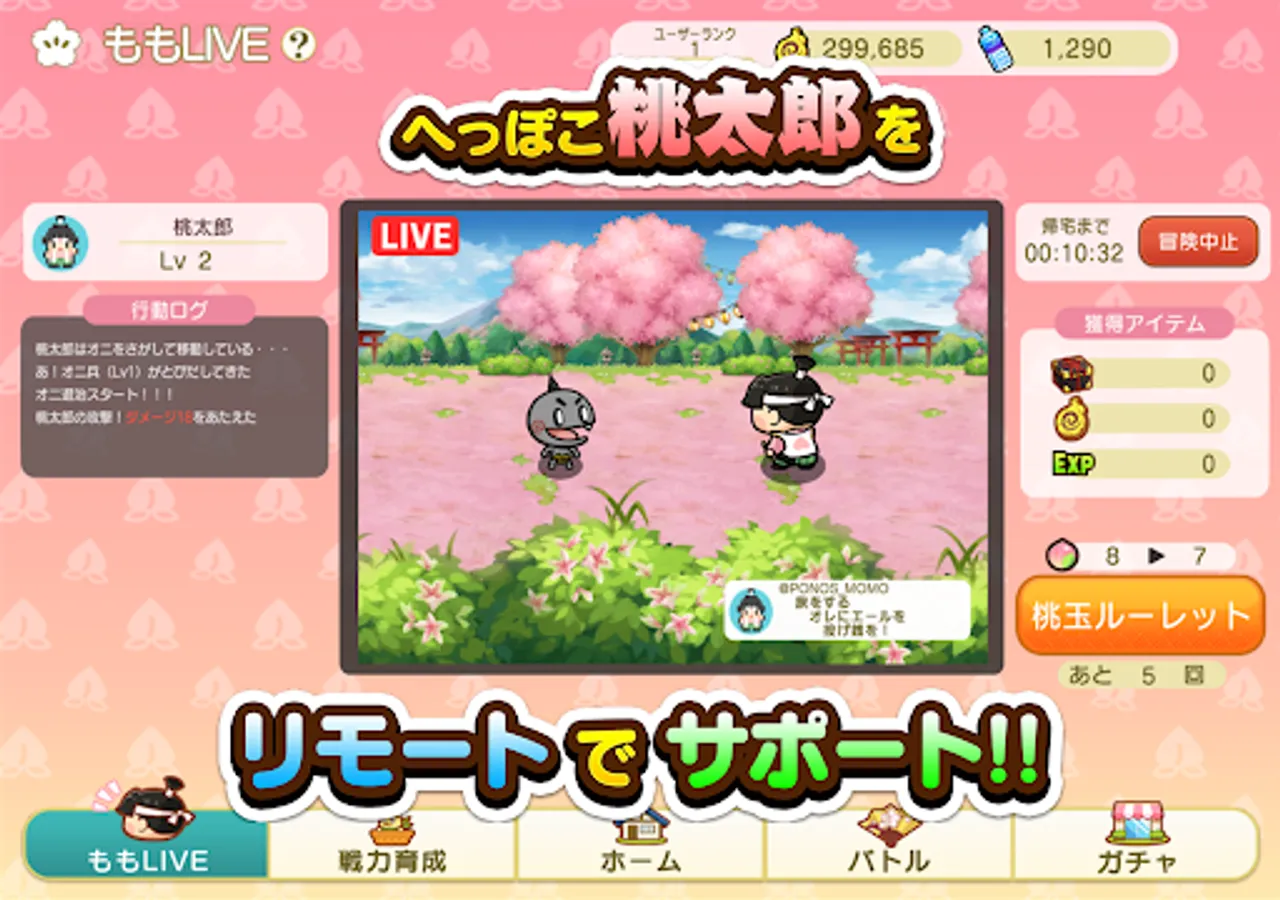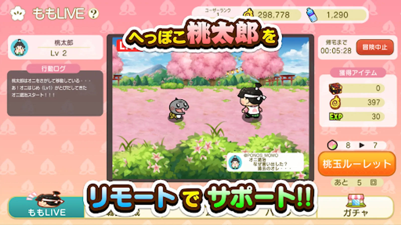 By leaving Momotaro on a journey for a certain period of time, he can get rid of oni and work part-time.