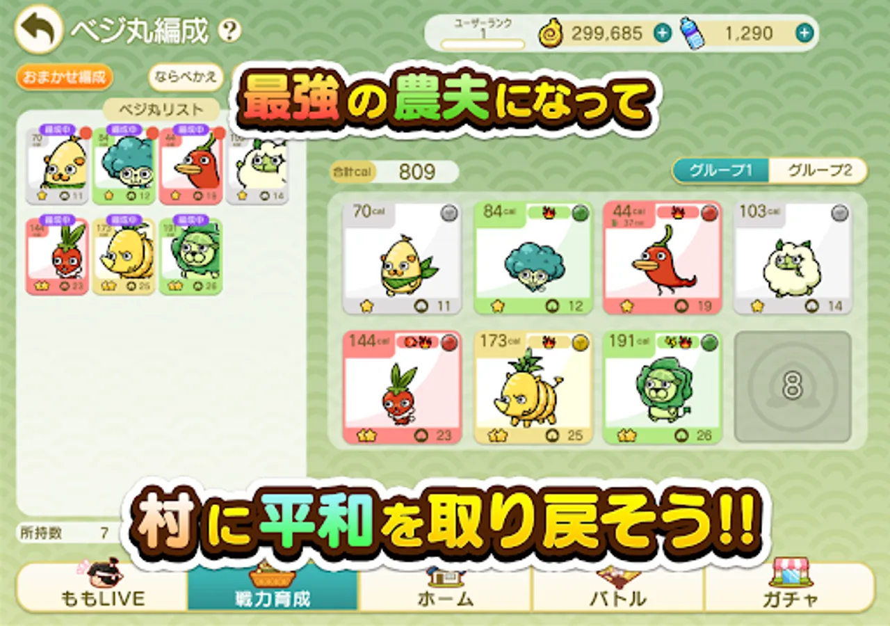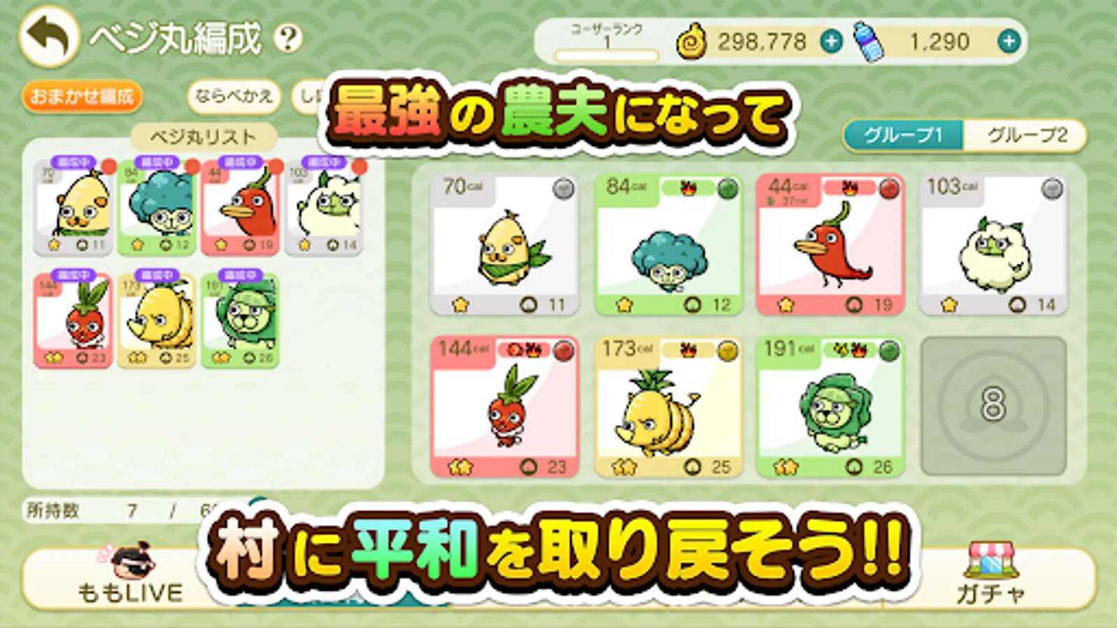 Let's aim to be the strongest farmer by making, growing and collecting vegetable characters.