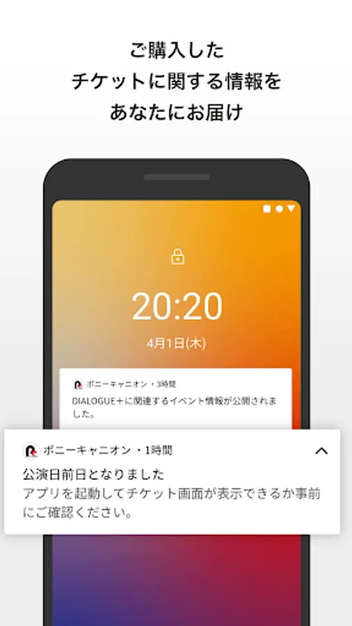 It is an application that has an electronic ticket function that can handle from ticket purchase to admission with one application, and a news function that delivers information from Pony Canyon. Visuals of artists and works are used for electronic tickets, and the tickets used can be collected at the ticket gallery. Register your favorite artists and works and we will send you the information you want by push notification.