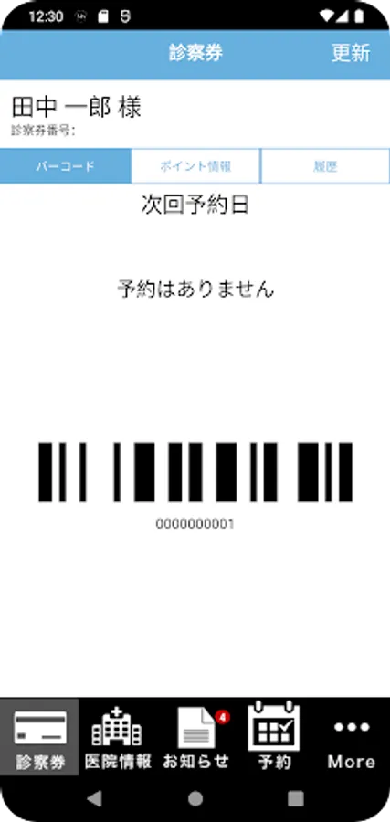 You can use it as a cardless examination ticket, such as a check-in function that can be accepted just by holding up a barcode, and a display of the next appointment date and time.