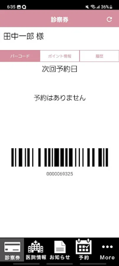 You can use it as a cardless examination ticket, such as a check-in function that can be accepted just by holding up a barcode, and a display of the next appointment date and time.