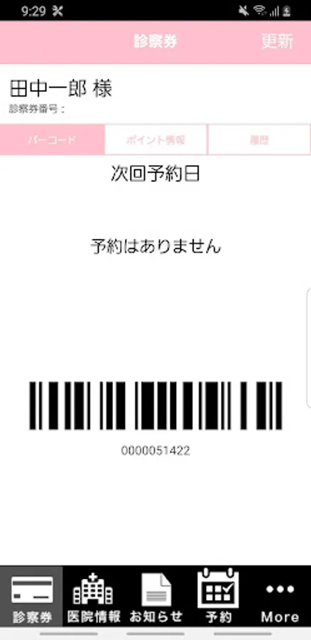 You can use it as a cardless examination ticket, such as a check-in function that can be accepted just by holding up a barcode, and a display of the next appointment date and time.