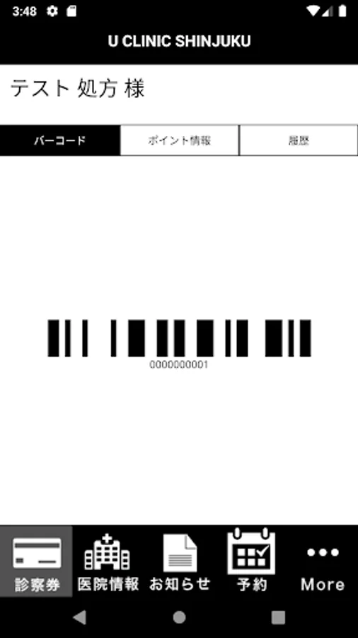 You can use it as a cardless consultation ticket, such as a check-in function that can be accepted simply by holding a bar code, and the display of the next reservation date and time.